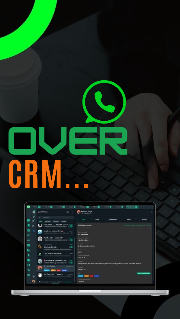 Cansado de perder oportunidades e gastar tempo gerenciando conversas no WhatsApp? O OVERCRM organiza tudo para você e transforma seu atendimento em vendas!